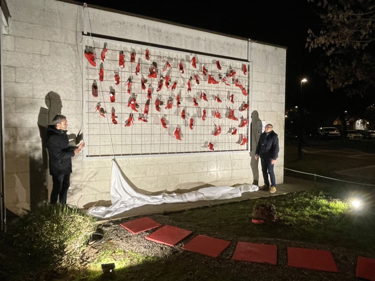 In occasione della Giornata contro la Violenza sulle donne, martedì 25 novembre, davanti all’auditorium di Vignate, una rete intrecciata ha accolto paia di scarpe rosse, leggere come ricordi e pesanti come assenze. Ogni paio porta un nome, un mestiere, una vita spezzata.