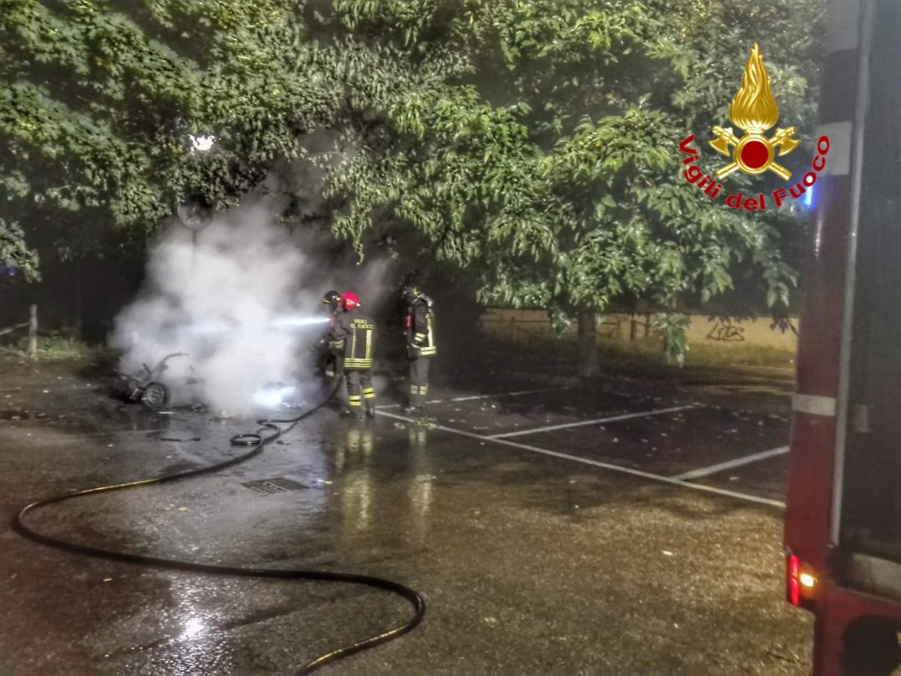 Un’auto in fiamme nel parcheggio della stazione. E’ successo nella notte tra lunedì 28 e martedì 29 maggio a Vignate.