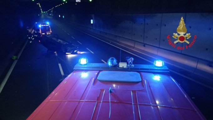 Per cause in fase di accertamento da parte della Polizia stradale, la vettura si è ribaltata dopo aver impattato contro una parete della galleria. E’ avvenuto attorno all’1.40. Non risultano altri mezzi coinvolti.