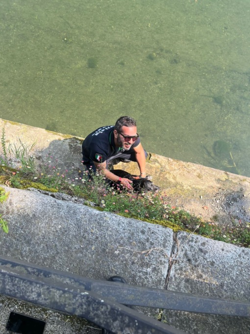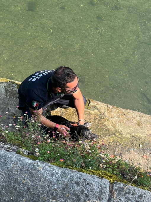 “Laika” continuava a muoversi sul muretto che costeggia l’acqua senza però riuscire a tornare indietro dato che il percorso è ostruito da cespugli.