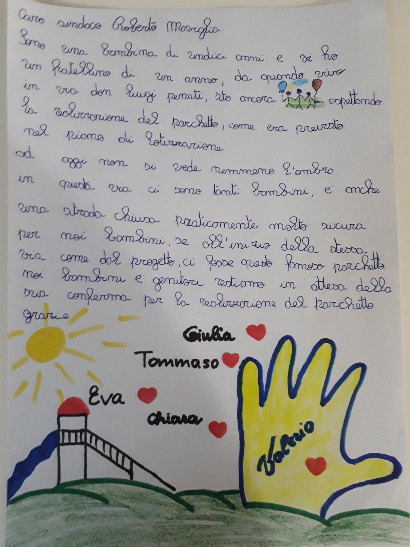 Cassano la letterina della piccola Chiara al sindaco è servita, Groppello avrà il suo parco giochi