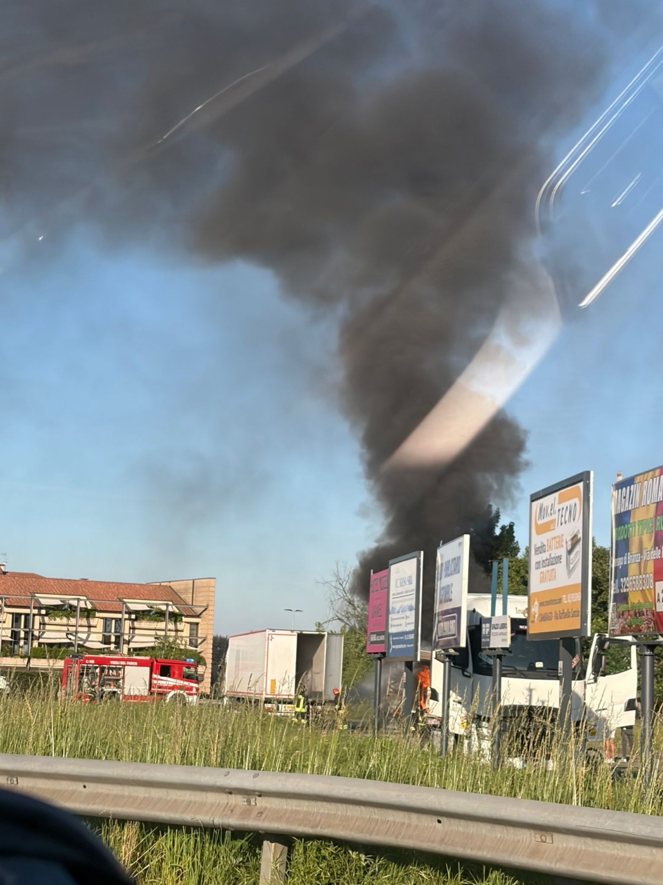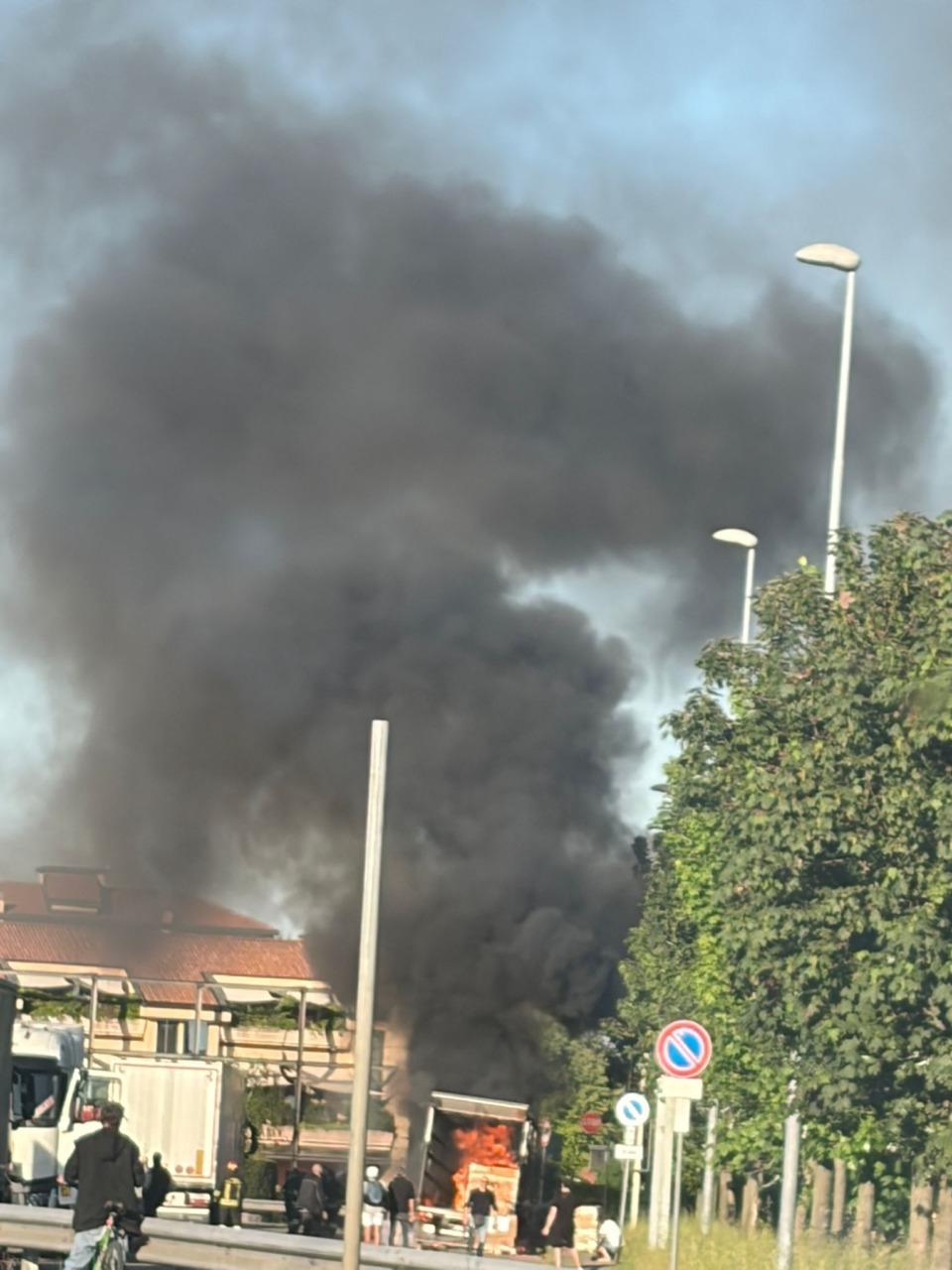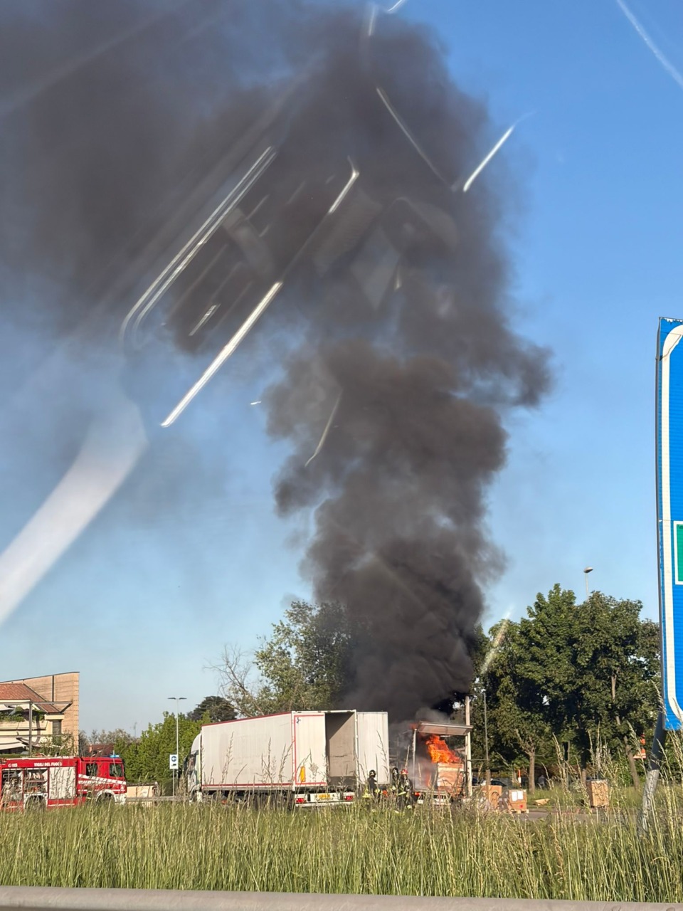 A segnalare l’incendio alla redazione sono stati alcuni lettori che ci hanno inviato le foto. Erano da poco passate le 18.30 di oggi, venerdì 24 aprile 2026, quando il rimorchio di un camion è stato letteralmente avvolto dalle fiamme. I pompieri di Gorgonzola sono intervenuti immediatamente sul posto per domare le fiamme. Il fumo nero che si sollevava dall’incendio, fortunatamente, non ha avuto conseguenze sulla viabilità e sui tanti automobilisti che transitano lungo la zona commerciale cambiaghese.