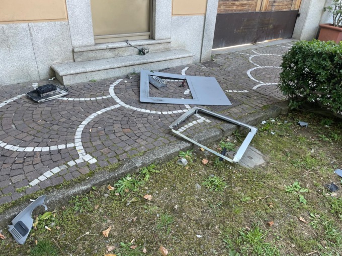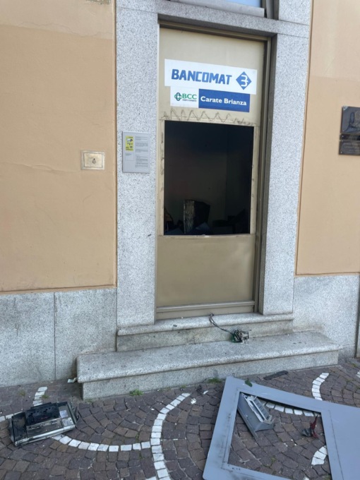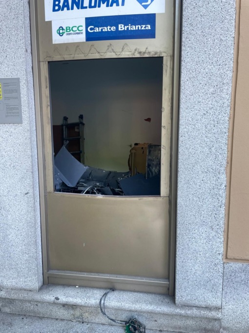 L’esplosione è stata alle 4 di sabato 17 maggio 2025. Il boato è stato violentissimo e lo si deduce anche dai detriti sparsi un po’ ovunque, anche a decine di metri di distanza. I ladri pare siano riusciti a portarsi via l’intero sportello bancomat, anche se non si conosce il contenuto. Di sicuro i danni sono notevoli, come si può intravedere dal “buco” lasciato dall’esplosione.