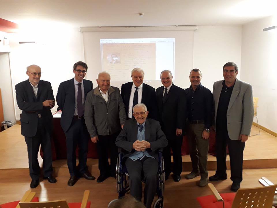 Egidio Pirola, al centro, durante la festa per i suoi cento anni