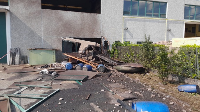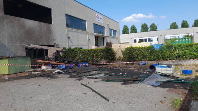 L’esplosione ha interessato un’autoclave ad acqua utilizzata per colorare il legno, ma fortunatamente i contenitori di acido non sono stati danneggiati. Sul posto si percepisce odore di acido acetico, non pericoloso.