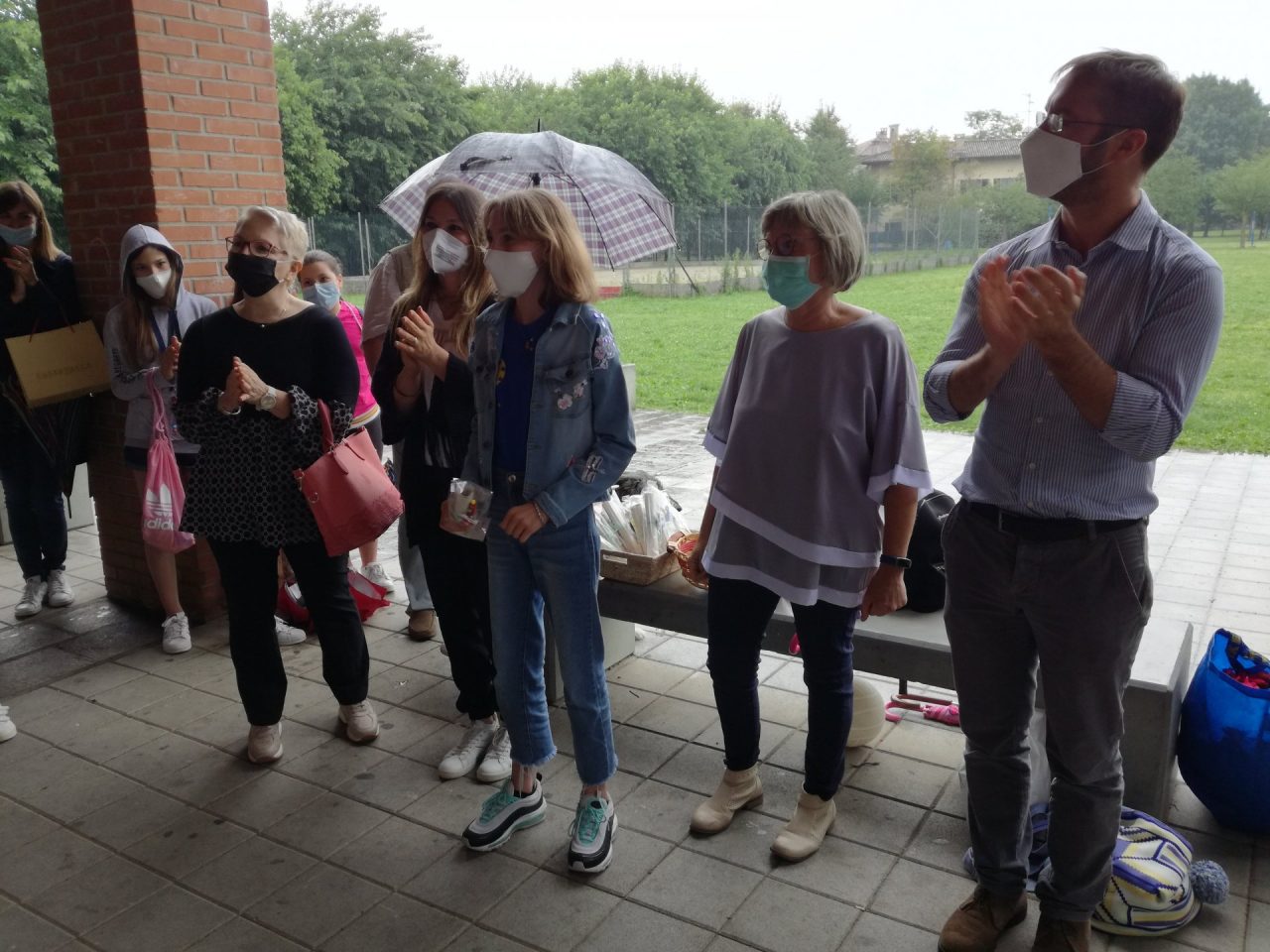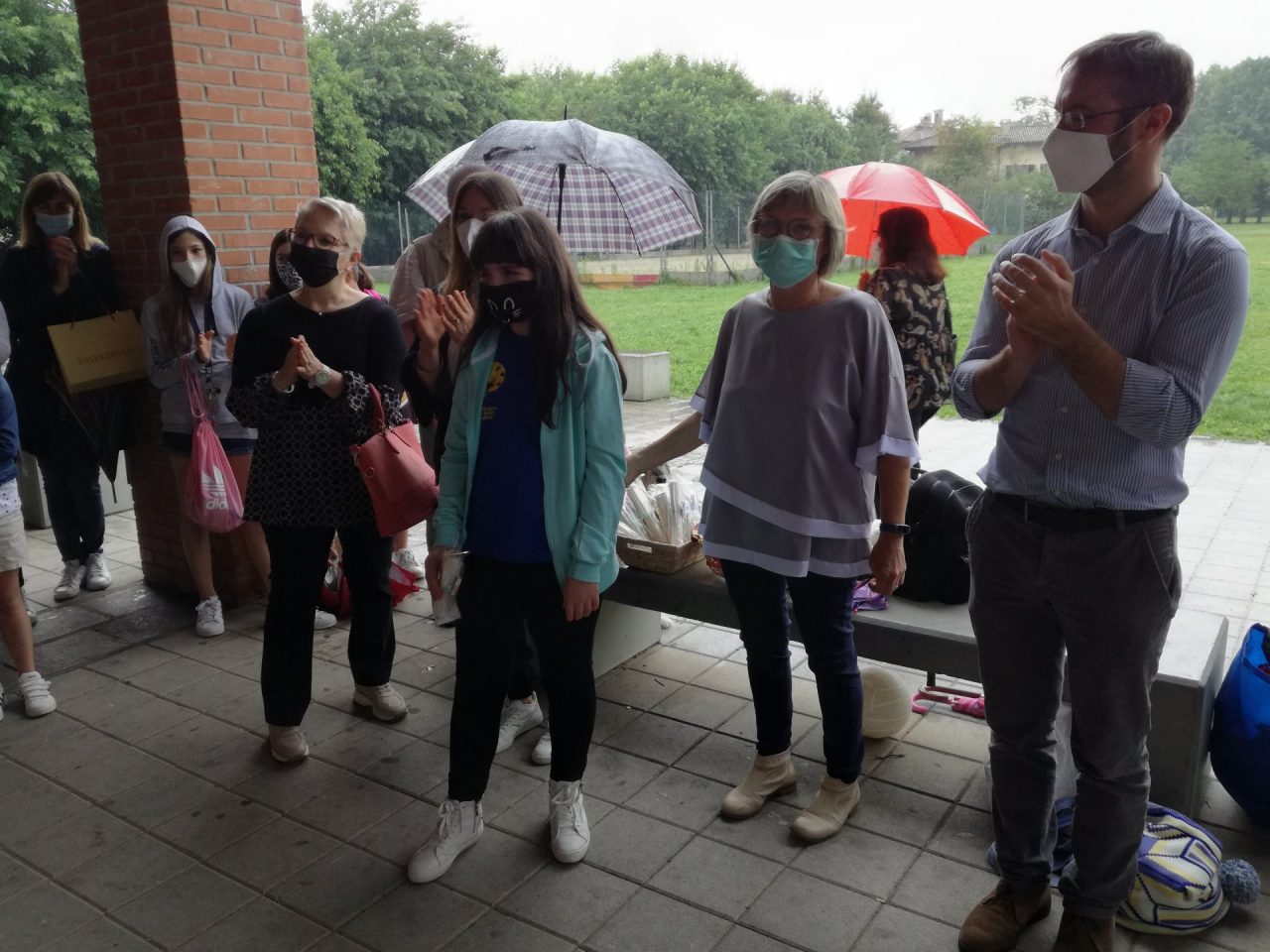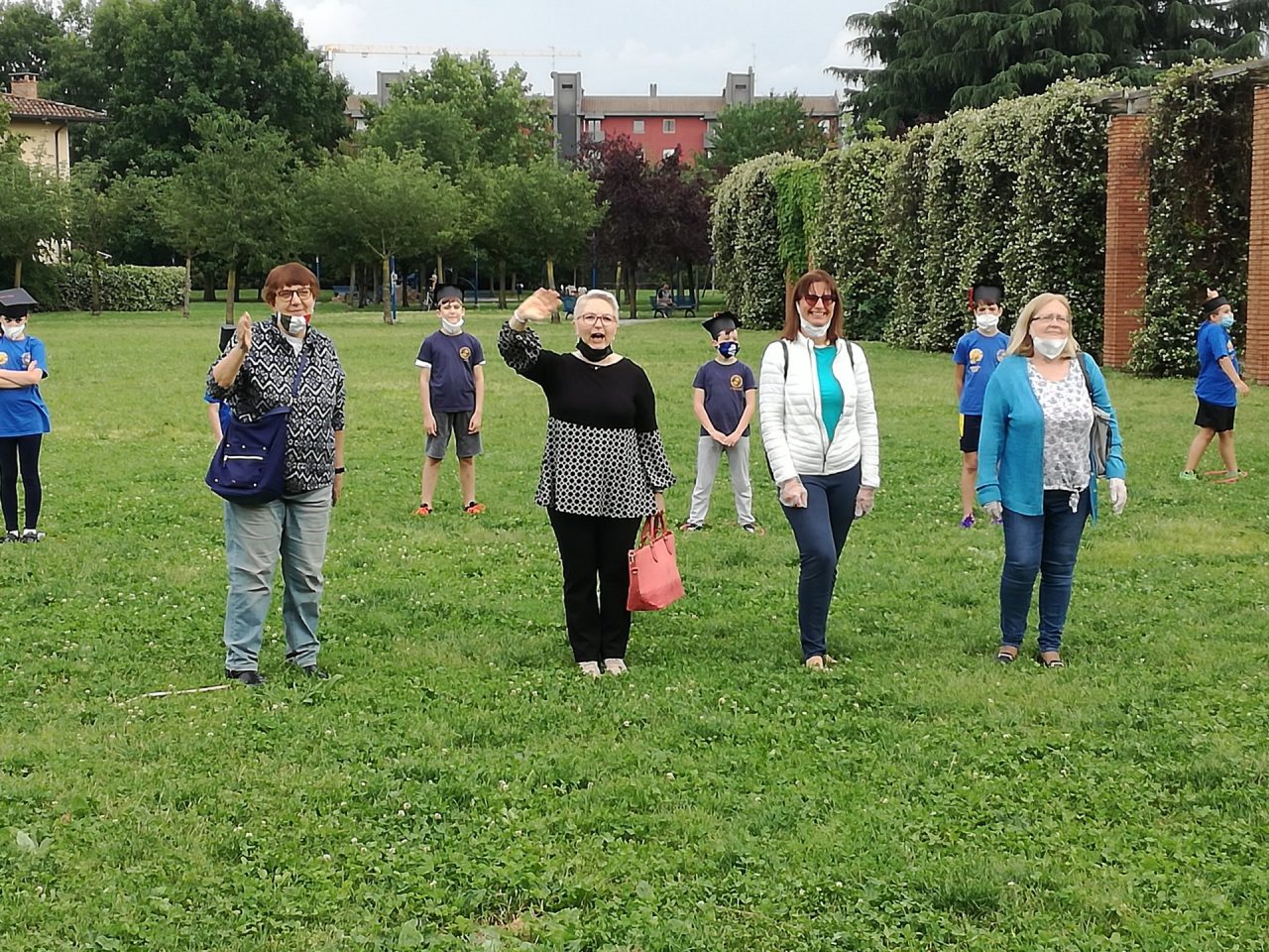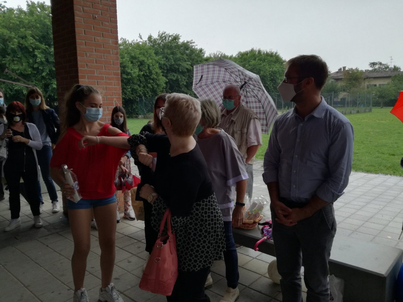 Per tutti, genitori compresi, è stato un momento pieno di gioia e l’entusiasmo era palpabile. Il primo cittadino e l’assessore alla Scuola Gianluca Poldi sono passati a porgere il saluto dell’Amministrazione. Quest’ultimo ha anche invitato i piccoli a prendere gli hula hoop che avevano per mantenere le distanze e divertirsi insieme. Presenti le maestre, che hanno partecipato a titolo personale e hanno ricevuto dei regali preparati da mamme e papà. Causa maltempo solamente la prima classe ha potuto festeggiare sul prato, mentre le altre sono state costrette a rifugiarsi sotto i portici.