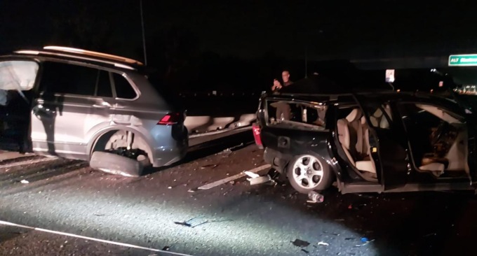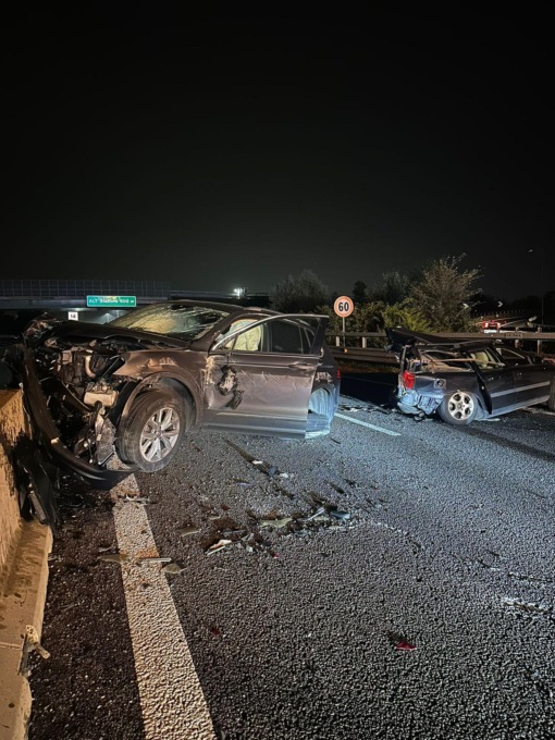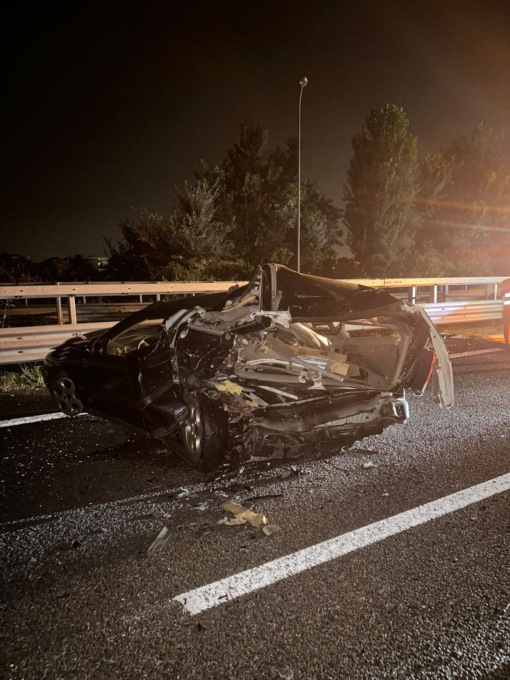 Lo scontro è stato violentissimo. Le due vetture si sono accartocciate e frammenti sono stati sparati in tutta la corsia.