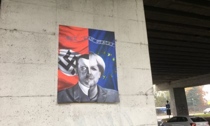 Hitler-Merkel (con tanto di svastica) sotto il ponte della tangenziale. Il disegno è apparso a Cologno Monzese all’altezza della rotonda di via Cavallotti, “porta di accesso” della città.
