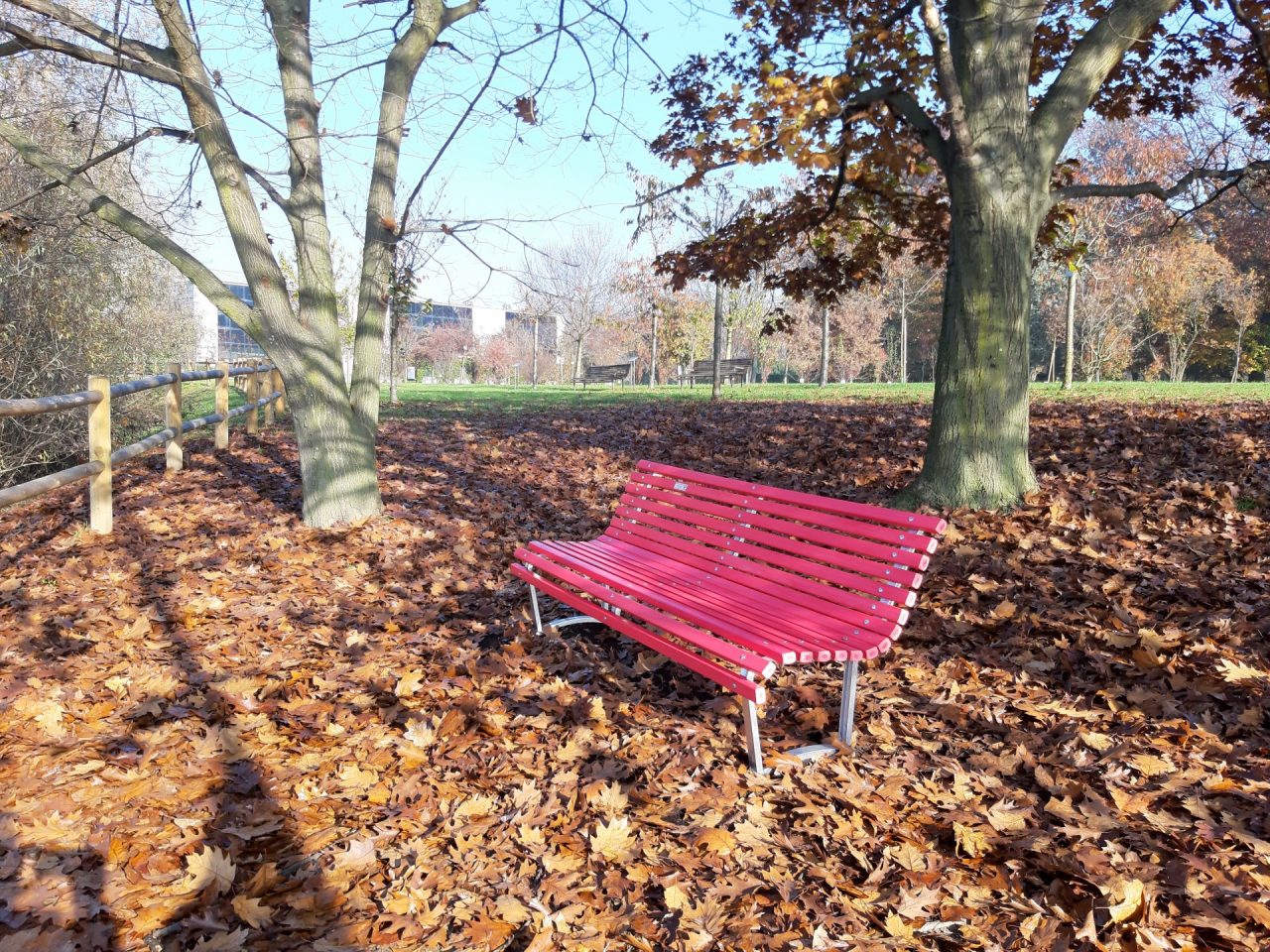Idroscalo, panchine rosse per manifestare l’opposizione alle discriminazioni e alla violenza di genere posizionate nel parco da Città metropolitana.