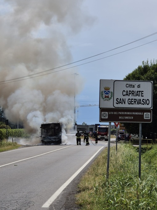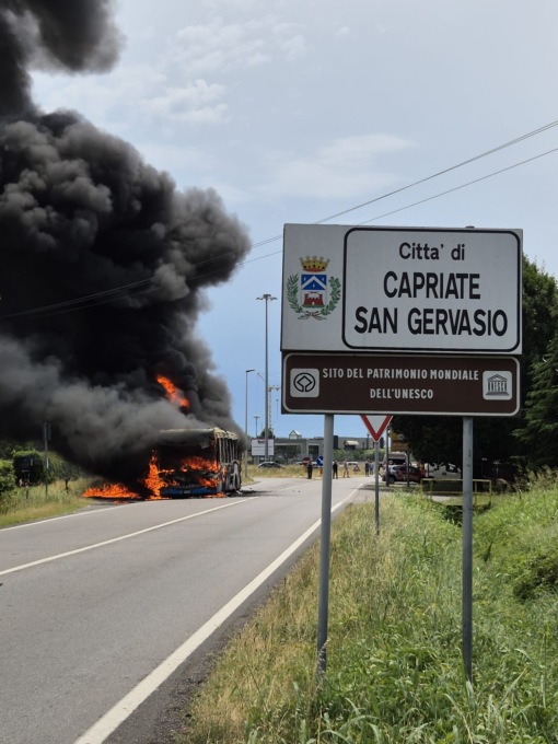 Ad essere avvolto all’improvviso dalle fiamme (partite dalla parte posteriore del mezzo, dove si trova il motore) è stato un pullman di linea che viaggiava lungo la Provinciale. Scattato l’allarme, la Centrale operativa dell’Agenzia regionale emergenza urgenza ha inviato sul posto un’ambulanza e un’automedica, allertate in codice rosso, i Carabinieri della Compagnia di Treviglio e i Vigili del fuoco del Comando provinciale di Bergamo.