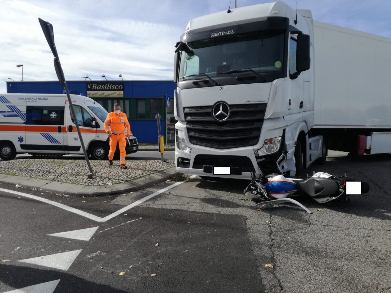 La chiamata ai soccorsi è scattata alle 14.15 da via Di Vittorio a Peschiera Borromeo, dove si è verificato un incidente che ha visto coinvolti un camion e una motocicletta. Sul posto si sono portati i soccorritori della Croce Bianca di Paullo e anche il personale dell’elisoccorso.