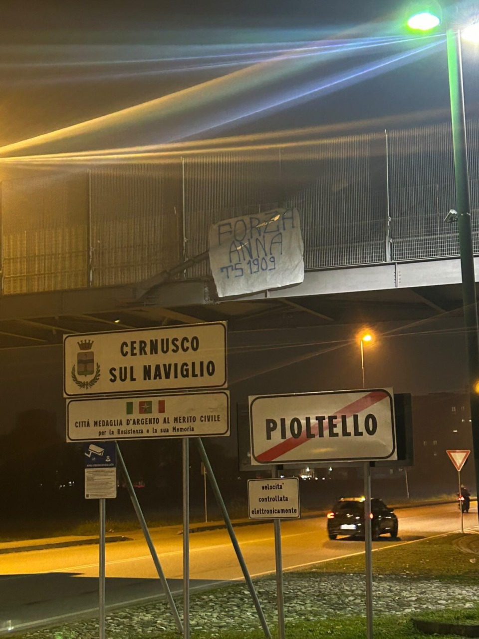 Lo striscione è stato esposto allo stadio Città di Gorgonzola in occasione di Giana-Albinoleffe, gara di Serie C giocata nel tardo pomeriggio di ieri, domenica 9 novembre. Gli ultras, dopo la gara, lo hanno poi affisso sul sovrappasso al confine tra Pioltello e Cernusco.