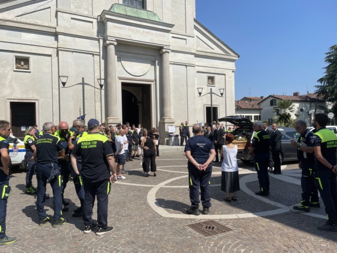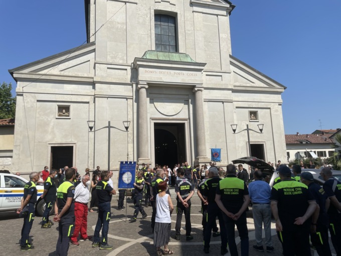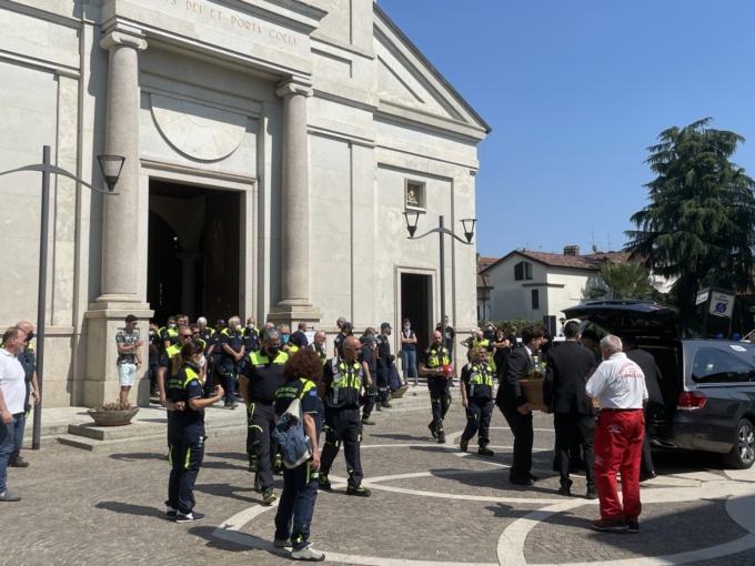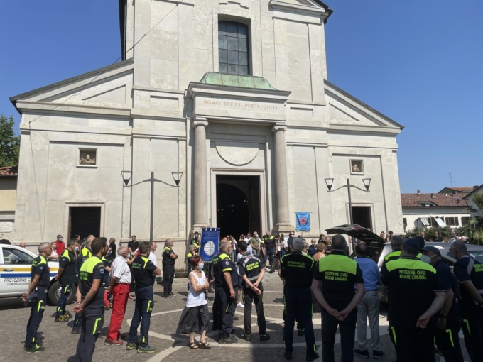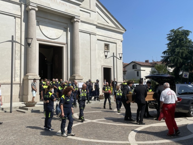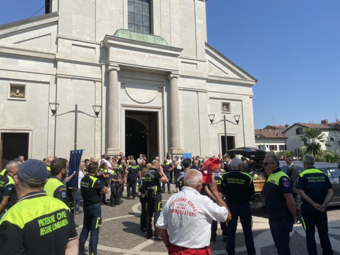Alla cerimonia un mare di tute gialle, quelle dei volontari della Protezione civile di Bussero, Cambiago, Cassina, Cernusco, Gessate, Gorgonzola, Melzo, Pessano con Bornago, Pioltello, Rodano, Segrate, Vimodrone e Vignate, accorsi per rendere omaggio all’81enne.