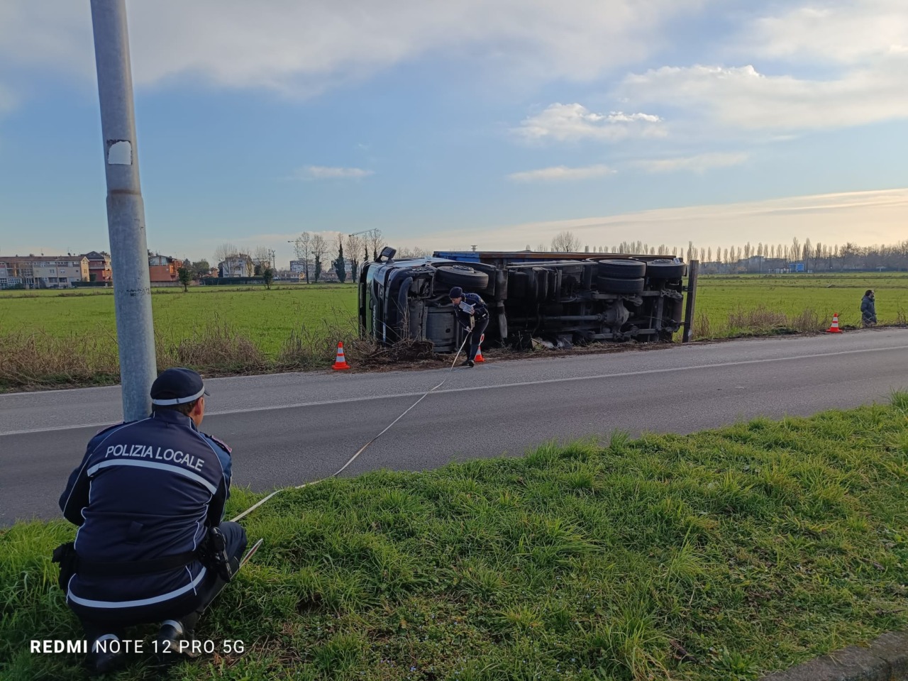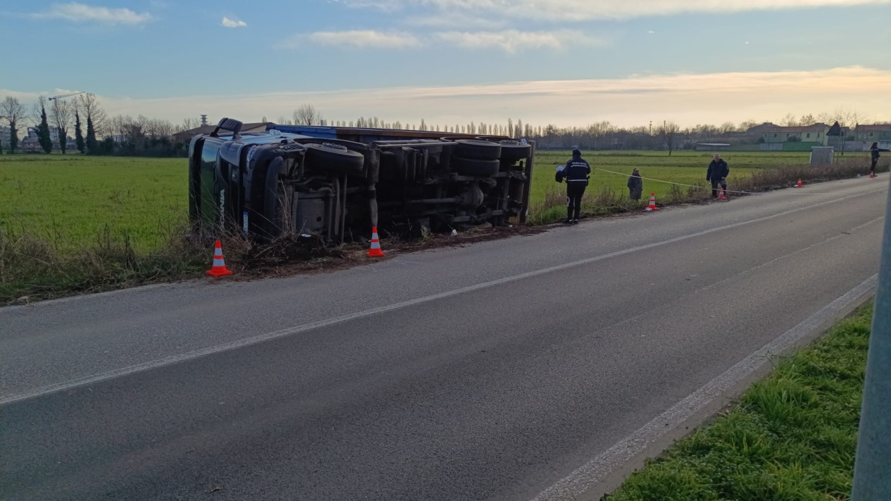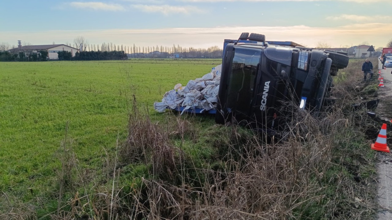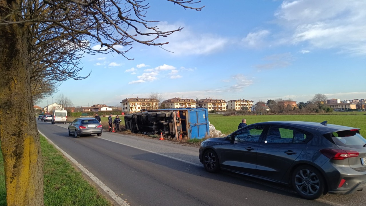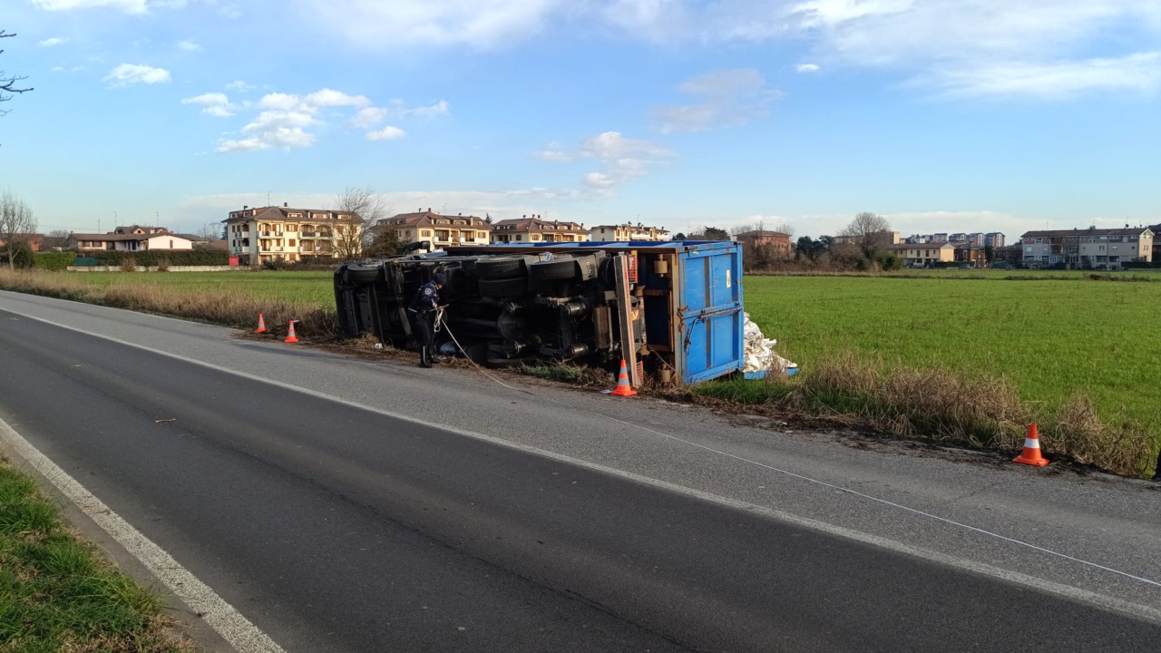 E’ uscito di strada e si è ribaltato nel campo agricolo accanto alla carrozzabile, dove è finito anche il carico che si trovava nel cassone. E’ accaduto oggi, lunedì 16 febbraio 2026, a Cernusco sul Naviglio in via Cavour.