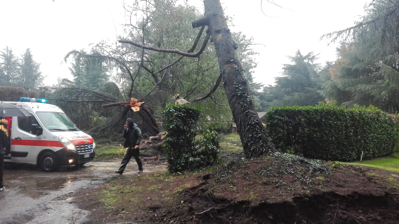 Operaio cade da un albero. Intervento in codice rosso a Cernusco sul Naviglio stamattina, martedì 19 novembre 2019.