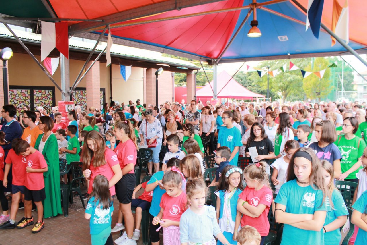 La tradizionale Messa dell’ultimo giorno di Palio è stata speciale, perché è coincisa con il saluto del coadiutore che, dopo nove anni e nove giorni, si appresta a intraprendere una nuova avventura a San Donato Milanese. Commozione da parte del prete, ma anche dei tanti ragazzi presenti nel momento del saluto.