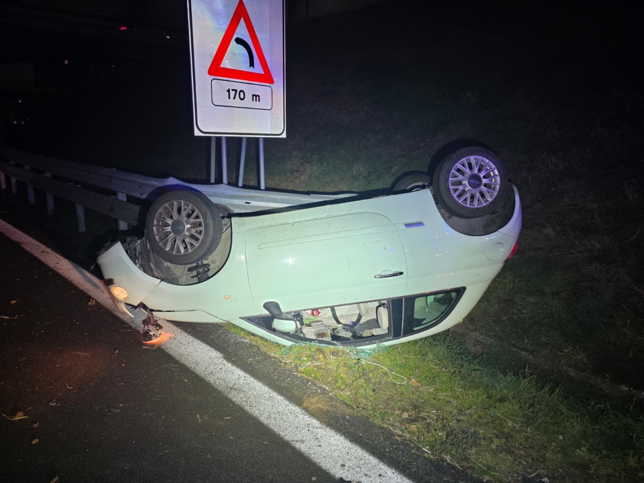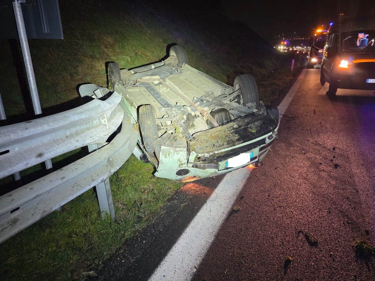 Ha perso il controllo della sua Fiat 500 per una disattenzione: è uscita di strada inerpicandosi sul terrapieno che costeggia la carreggiata e alla fine si è ribaltata, con l’auto che si è fermata addosso al guardrail.