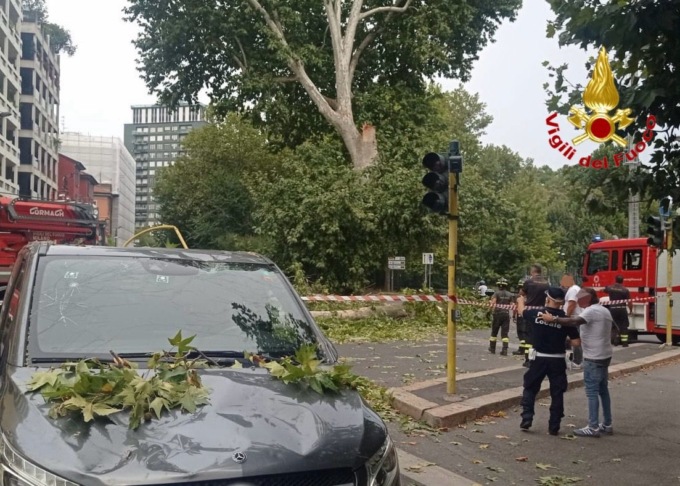 Sul posto sono intervenuti gli agenti della Polizia locale di Milano e i Vigili del fuoco. A essere colpita dal ramo caduto sulla carreggiata è stata una vettura, un van con targa slovena, che stava transitando in quel momento per la via.