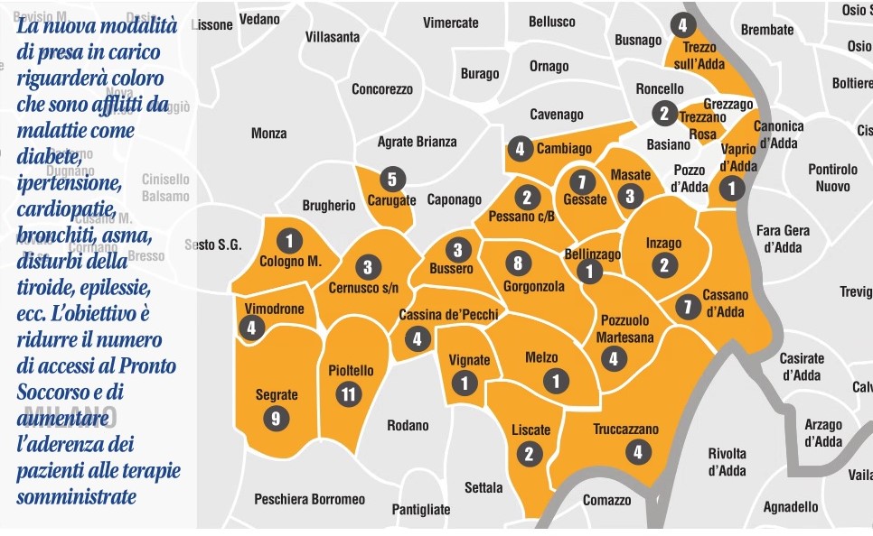 In basso nella foto i medici di famiglia che hanno deciso di aderire alla presa in carico nella zona Adda-Martesana