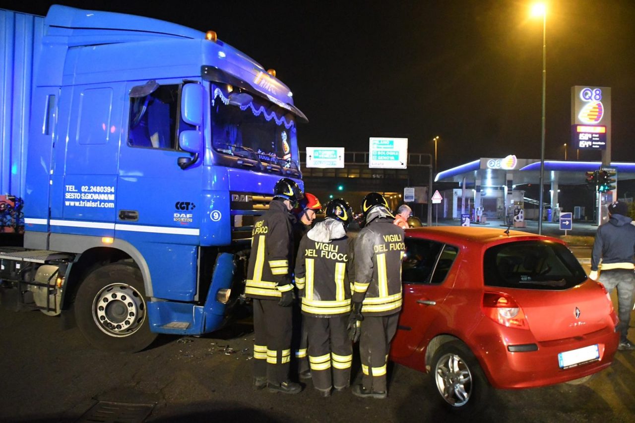 E’ di due feriti, trasportati al Pronto soccorso della clinica Multimedica, il bilancio dell’incidente avvenuto ieri, lunedì, poco prima delle 19.30, ai confini con Cologno Monzese, pochi metri prima dello svincolo della tangenziale. A entrare in collisione sono stati un autoarticolato e una Renault Clio, con a bordo due donne di 45 e 46 anni. E proprio queste ultime hanno avuto bisogno delle cure dei sanitari. Il muso dell’utilitaria è andato completamente distrutto. Per estrarle dalle lamiere è stato necessario l’intervento dei Vigili del fuoco. Incolume, invece, l’autista del mezzo pesante di una ditta di Sesto San Giovanni.