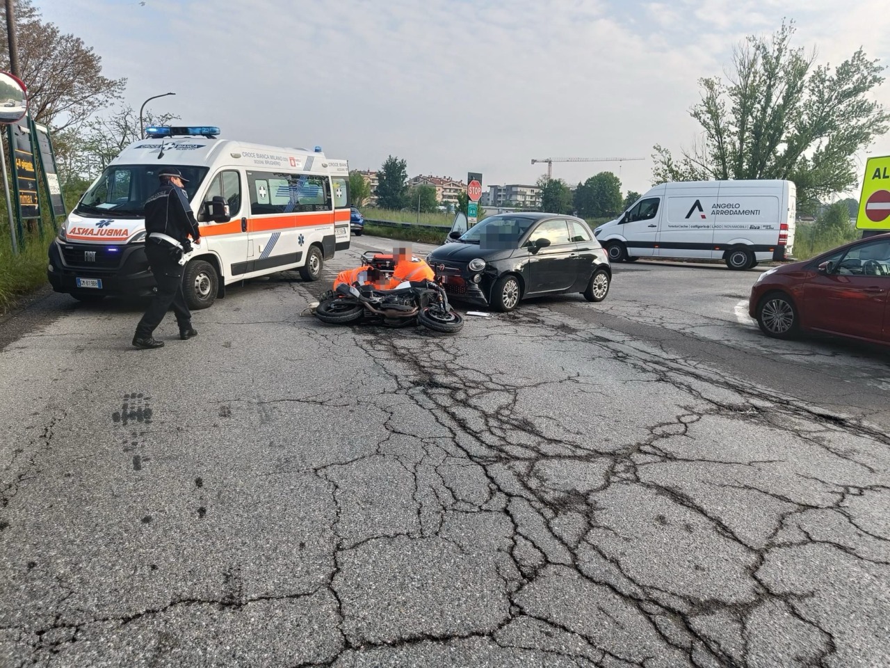 Nel sinistro sono state coinvolte una motociclo Cf-Moto, condotto dal 29enne, e una Fiat Cinquecento con al volante un 23enne residente a Milano.