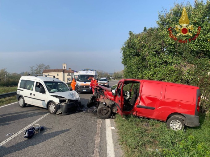 Scontro frontale tra due furgoni: tre feriti, uno gravissimo. E’ avvenuto a Canonica d’Adda: per estrarre le persone dagli abitacoli è stato necessario l’intervento dei Vigili del Fuoco del Comando provinciale di Bergamo.