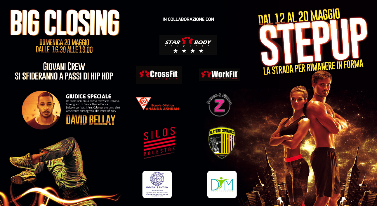 Domenica: 12-13 Jumple Z dance & fitness (ass. culturale studio danza classica e moderna), 13-14 CrossFit (Start Body), 15-19 Sfida hip hop.