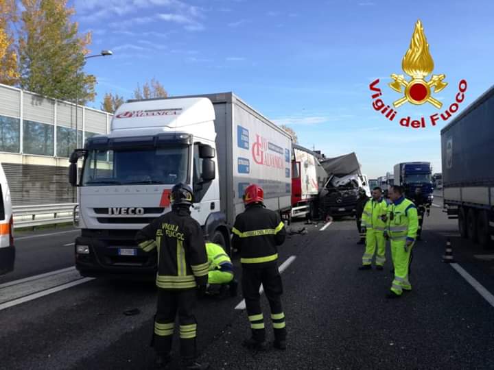 Tamponamento tra Tir in autostrada