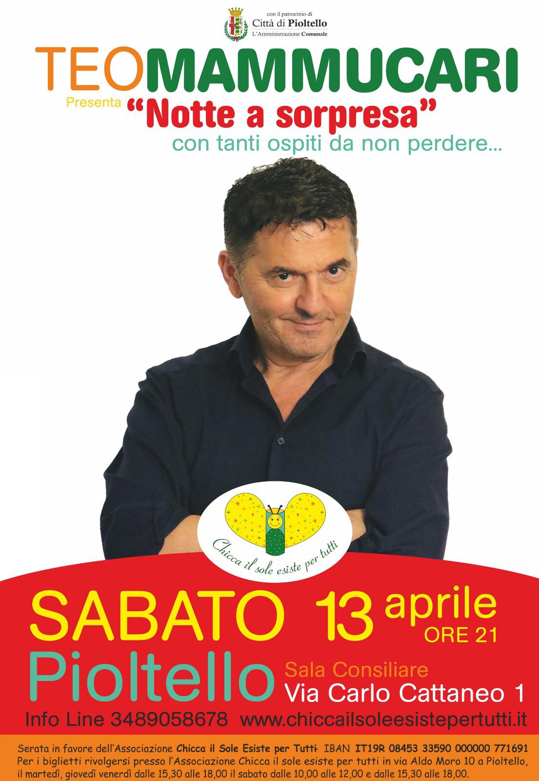 Save the date: il 13 aprile il noto showman Teo Mammucari sarà a Pioltello con il suo spettacolo “Notte a sorpresa, con tanti ospiti da non perdere”. Il tutto per raccogliere fondi a favore dell’associazione “Chicca il sole esiste per tutti”.