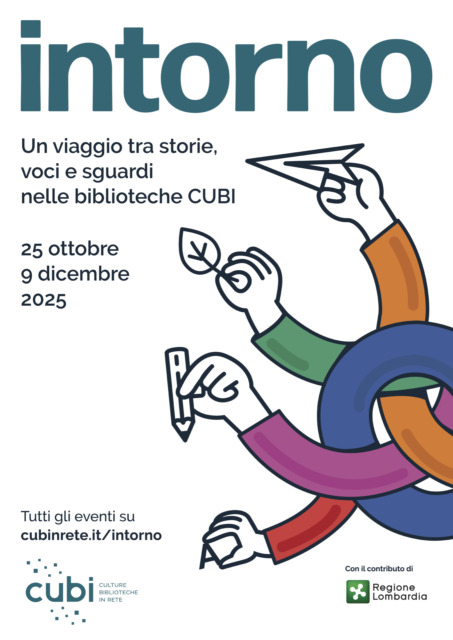 “Intorno” è una rassegna diffusa che attraversa le biblioteche del sistema Cubi per raccontarle come luoghi vivi, aperti e capaci di generare visioni condivise. L’iniziativa nasce dal desiderio di muoversi — tra diversi linguaggi, temi e forme artistiche — per esplorare il presente da prospettive nuove, intrecciando dimensione collettiva e incontri uno a uno. È un viaggio tra storie, voci e sguardi che coinvolge sensi ed emozioni, costruendo legami tra comunità e territori e trasformando le biblioteche in hub culturali dinamici, spazi di connessione e partecipazione.