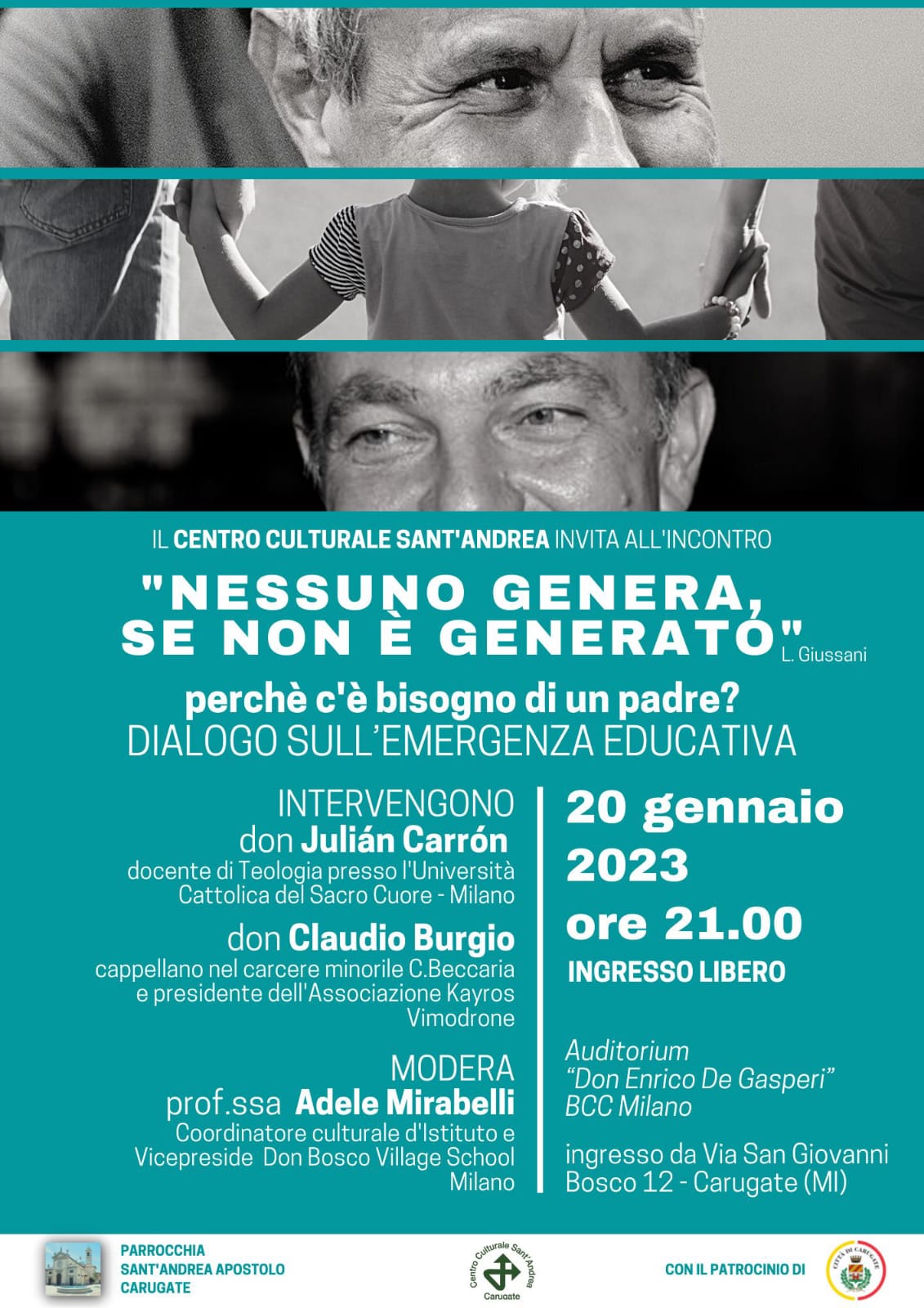 Il 2022 è stato l’anno delle commemorazioni di monsignor Luigi Giussani, educatore che ha dedicato la propria vita in particolare ai più giovani. Un’occasione per ragionare su un tema di stretta attuale come l’emergenza educativa che interessa sempre più ragazzi, adolescenti e giovani, emersa con ancor maggiore forza come conseguenza dell’isolamento imposto dalla pandemia da Covid 19. Per questo motivo il Centro culturale Sant’Andrea di Carugate ha deciso di non spegnere i riflettori e di organizzare un incontro di riflessione e confronto con ospiti di grande livello.