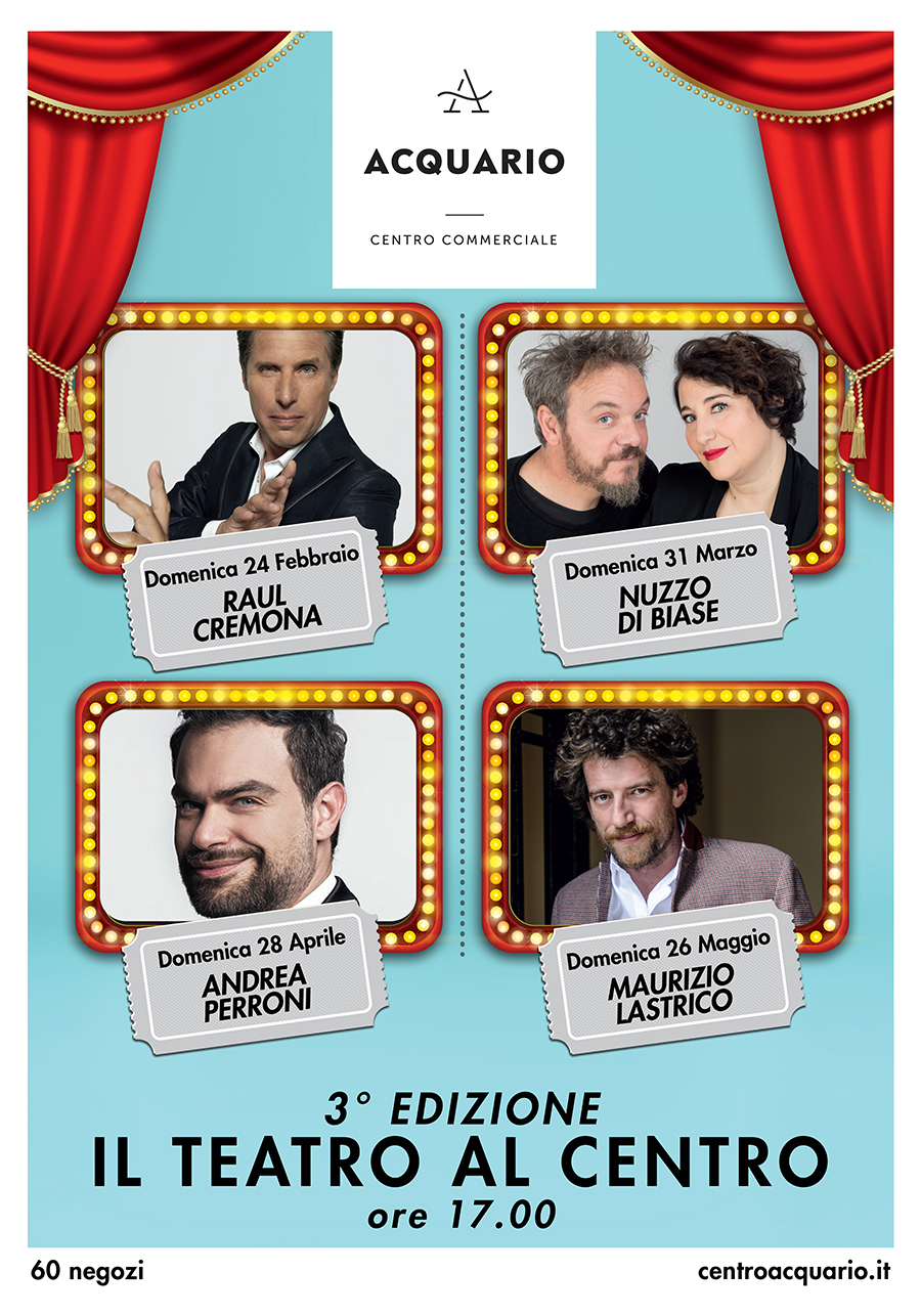 Anche quest’anno, quindi, la Primavera del Centro Acquario non sarà solo dedicato allo shopping, ma sarà anche all’insegna di grande spettacolo e tante risate, per allegri pomeriggi in famiglia.