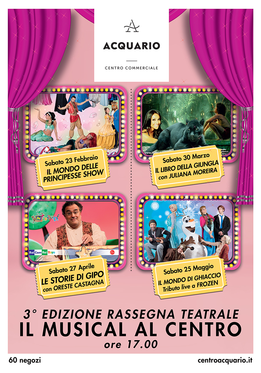 Sabato pomeriggio – 23 febbraio, 30 marzo, 27 aprile e 25 maggio – saranno animati da musica, ballo e favolose storie: dal fantastico mondo delle Principesse alle avventure del coraggioso Mowgly del Libro della Giungla con la partecipazione della bravissima Juliana Moreira, dalle storie di Gipo, con il coinvolgente Oreste Castagna, al fascino del mondo di ghiaccio, tributo a Frozen. Attesissimo proprio il capitolo due della saga più amata dalle principesse.