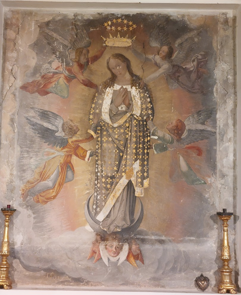 L’opera, datata 1601, rappresenta la Vergine Immacolata avvolta da luce dorata e circondata da angeli, secondo un’iconografia pienamente tridentina.