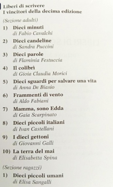 Sono ben 438 i racconti giunti da tutta Italia e dall’estero: dieci premiati nella sezione adulti e uno nella sezione ragazzi