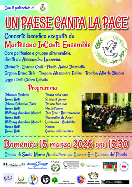 Un pomeriggio di musica, voci e solidarietà per dire insieme “pace”. È questo lo spirito di “Un Paese canta la pace”, il concerto in programma domenica 15 marzo 2026 alle 15.30 nella chiesa parrocchiale di Santa Maria Ausiliatrice a cassinesi Cassina de’ Pecchi.