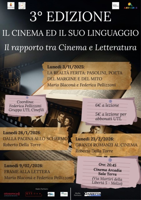 Torna al Cinema Arcadia di Melzo la terza rassegna dell’iniziativa “Il cinema e il suo linguaggi”», organizzato dal Gruppo cinefili Utl, la prima community in città dedicata agli appassionati della settima arte.