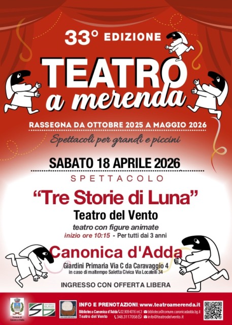 Secondo appuntamento a Canonica d’Adda di sabato mattina, consuetudine consolidata In Teatro a Merenda, soprattutto per le famiglie coi bambini piccoli, esperimento iniziato tre anni fa conferma la sua funzionalità sociale e culturale. Appuntamento sabato 18 aprile 2026.