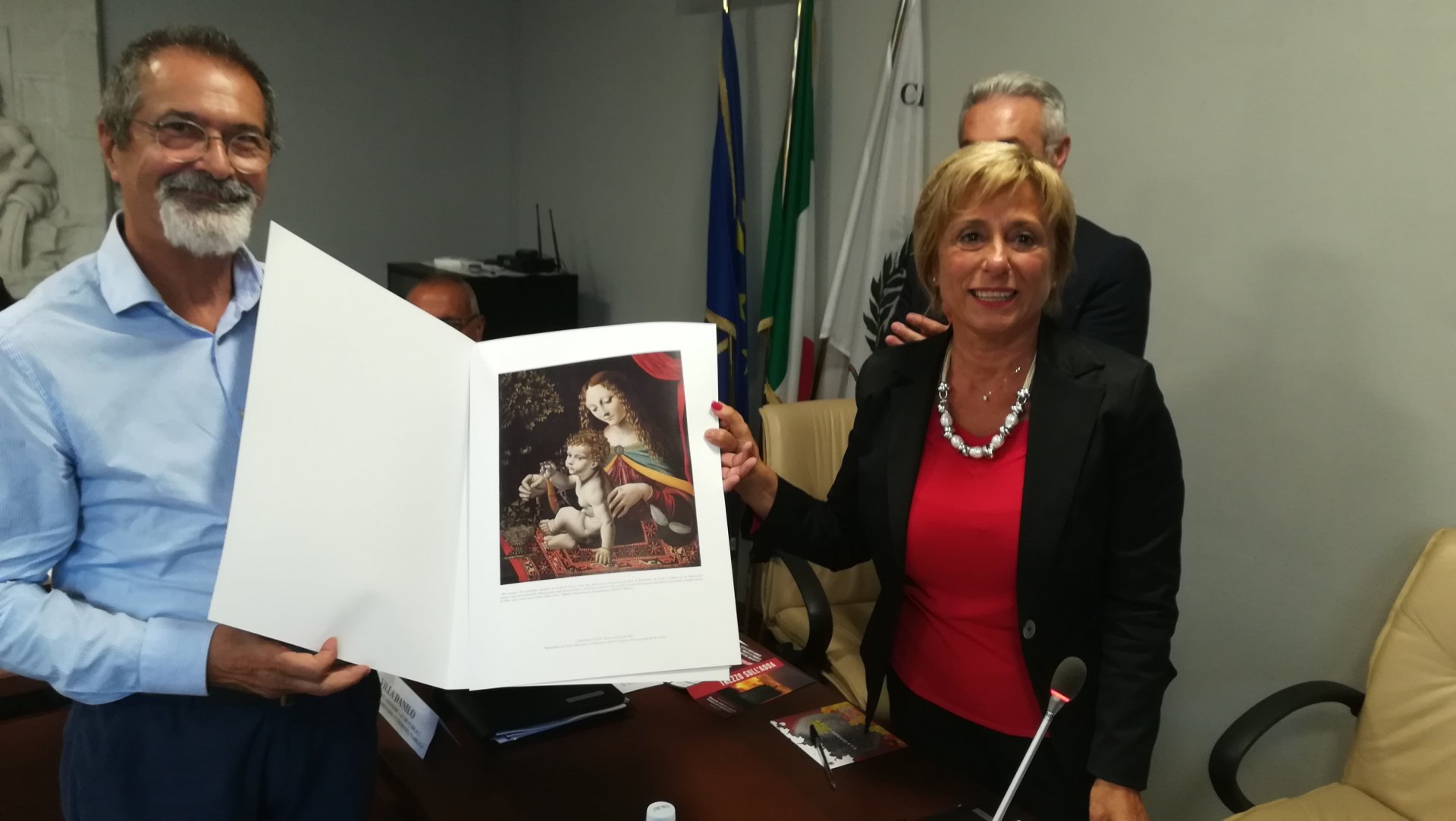 Giornata di ringraziamenti pubblici, quella avvenuta ieri, lunedì 30 settembre 2019. Nel pomeriggio, durante il Consiglio comunale, il sindaco Silvana Centurelli ha consegnato due stampe che riproducono la Madonna col bambino del pittore Bernardino de Conti (uno degli allievi di Leonardo da Vinci, ndr), il cui originale si trova all’interno dell’omonima Quadreria trezzese, a Paola Bassin e a Giuseppe Stucchi. Dato che a loro volta hanno fatto delle importanti donazioni alla città.