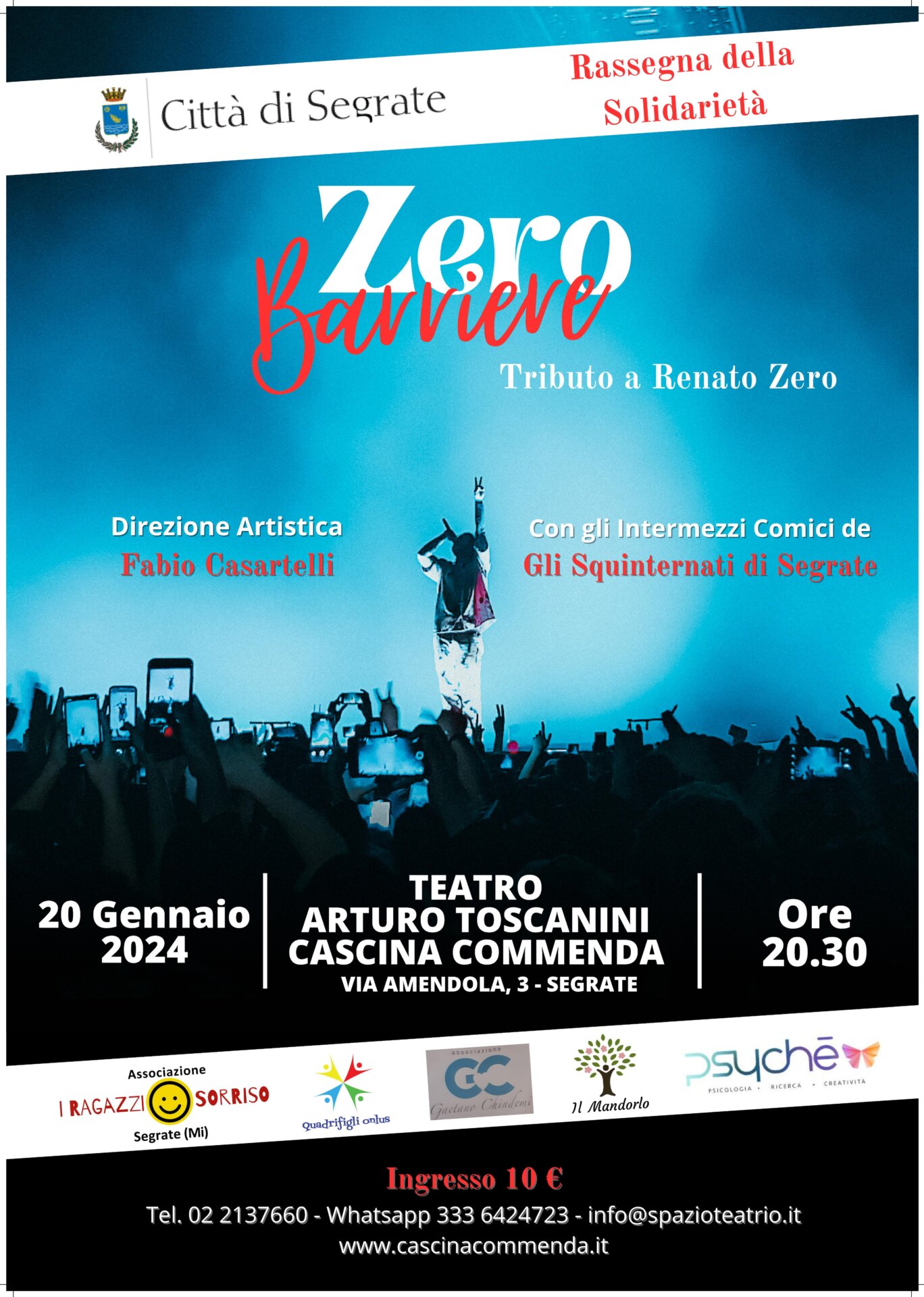 Il concerto si terrà il 20 gennaio alle 20.30 in Teatro Cascina Commenda e vedrà salire sul palco non solo il Tributo al grande Renato Zero, ma anche gli intermezzi comici de Gli squinternati di Segrate. Un evento che è stato realizzato con la direzione artistica di Fabio Casartelli e il patrocinio del Comune di Segrate.