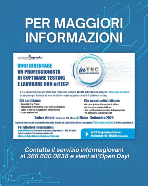 Sta per partire la nuova edizione del corso di Software Testing organizzato da inTEC – Tecnologia Inclusiva, cooperativa sociale del Gruppo L’Impronta che coniuga innovazione tecnologica e inclusione lavorativa, formando giovani – anche in condizioni di fragilità – per inserirli professionalmente nel settore digitale. Il percorso rientra nel progetto “Tecnologia Inclusiva”, giunto alla sua quinta edizione, un’iniziativa che negli anni ha consentito a numerosi ragazzi e ragazze di accedere a concrete opportunità di lavoro nel ruolo di consulente di software testing, figura oggi sempre più richiesta per garantire qualità e affidabilità delle applicazioni informatiche, in particolare nel settore bancario.
