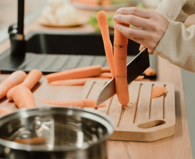 Le carote sono costituite principalmente da acqua e presentano un contenuto di proteine e grassi decisamente basso. Visto il modesto contenuto di zuccheri, sono da favorire in una dieta: possono essere sgranocchiate come antipasto poiché, grazie al loro apporto di fibra, contribuiscono a dare senso di sazietà e quindi un apporto calorico minore durante il pasto. Inoltre, le carote contengono un’elevata quantità di beta-carotene, in grado di contrastare l’invecchiamento cellulare e, di conseguenza, di contribuire alla prevenzione di patologie cardiovascolari e probabilmente di alcune forme tumorali.