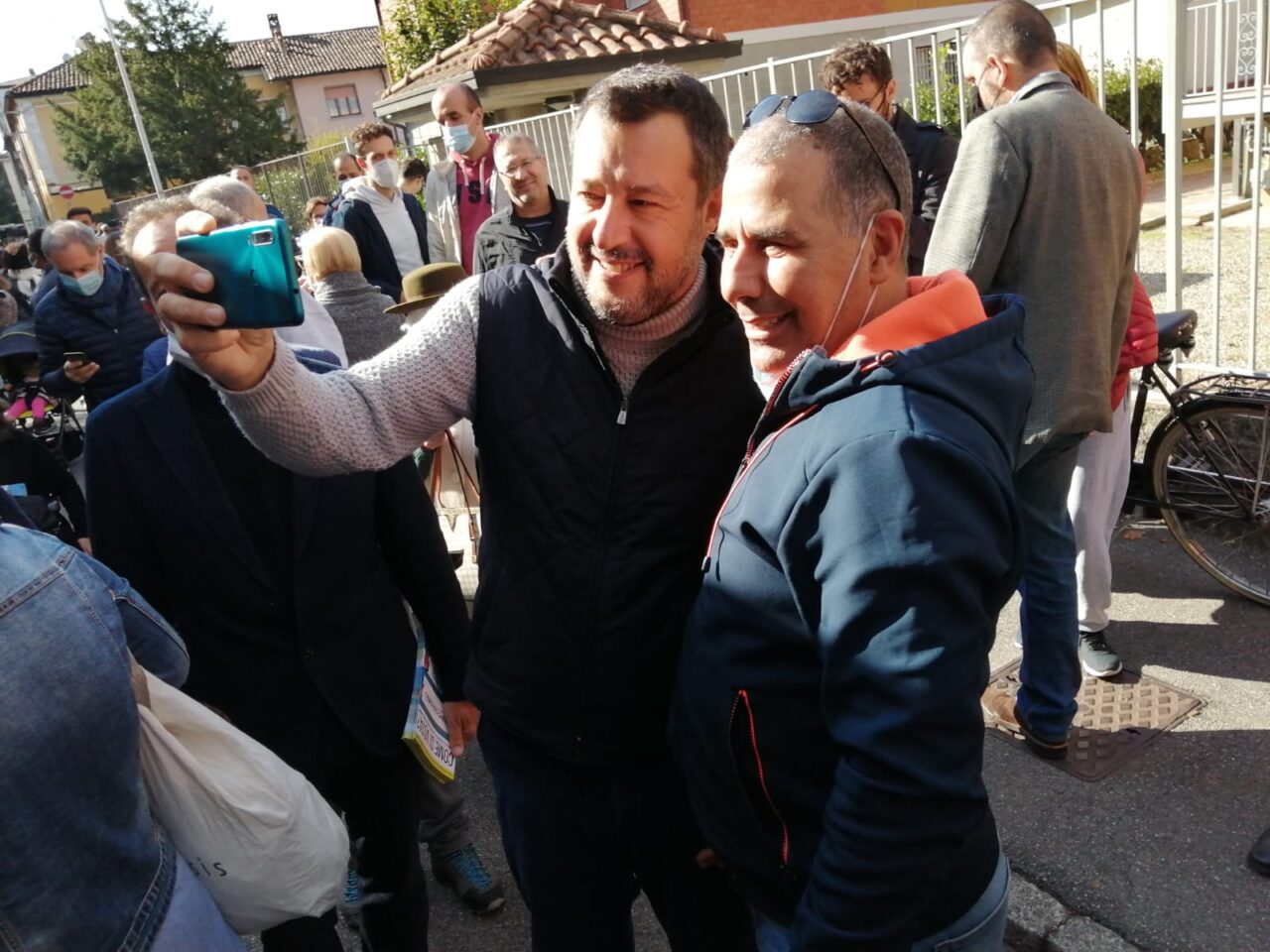 Bagno di folla per Matteo Salvini al mercato di Cassano d’Adda. Oggi, giovedì 14 ottobre 2021, il segretario della Lega è tornato in città, dopo la prima visita che si era svolta in occasione della prima tornata elettorale, per sostenere il candidato sindaco della coalizione di centrodestra Fabio Colombo, in vista del ballottaggio in programma domenica 17 e lunedì 18 ottobre 2021.