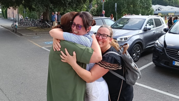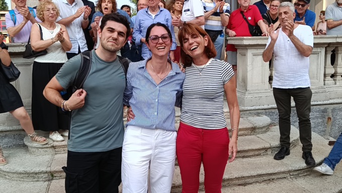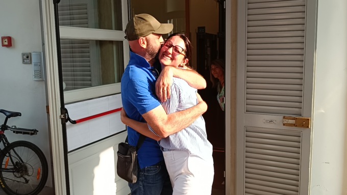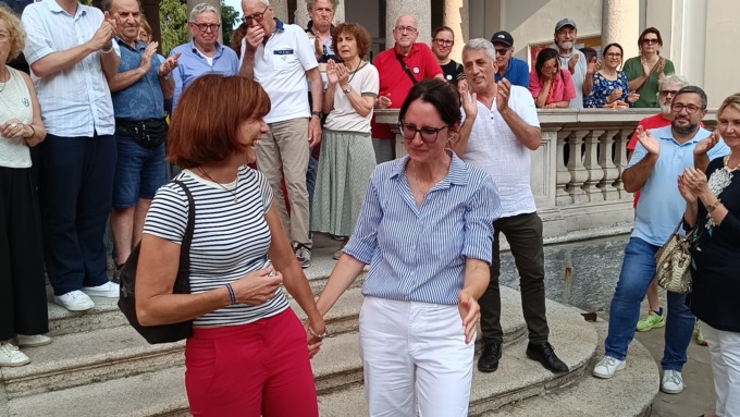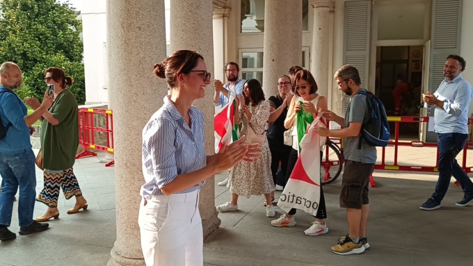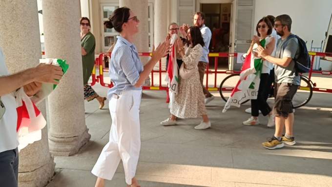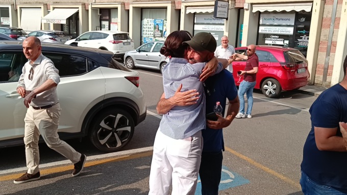 Davanti all’ingresso del Municipio ha ringraziato tutti, si è detta commossa ed è stata raggiunta dal marito.