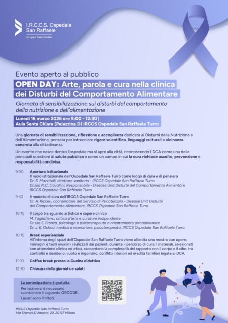 In occasione della Giornata Nazionale dedicata ai Disturbi del Comportamento Alimentare (D-NA) – Fiocchetto Lilla, l’Irccs Ospedale San Raffaele -Turro promuove un ciclo di iniziative gratuite e aperte alla comunità, con l’obiettivo di sensibilizzare, informare e offrire momenti di ascolto e supporto specialistico a pazienti, familiari e cittadini.