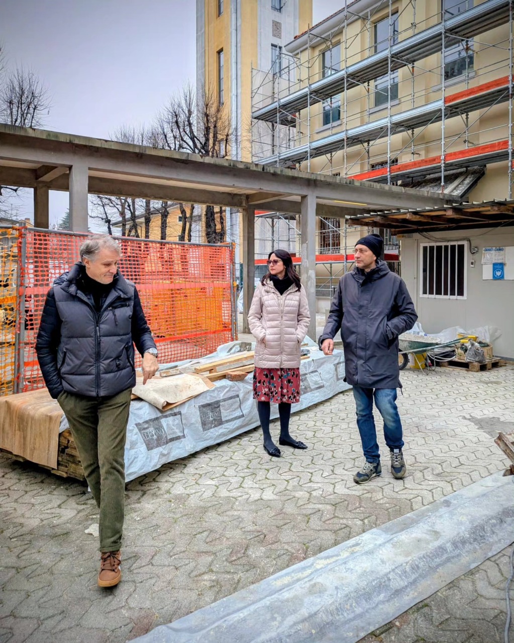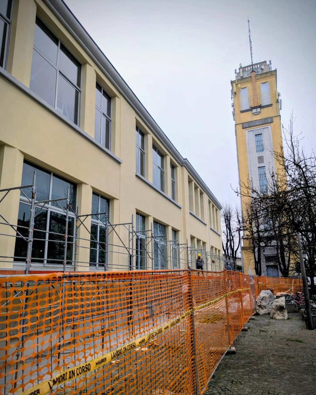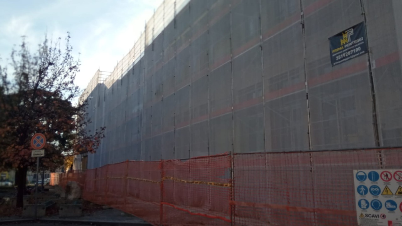 Questa mattina sono stata in visita al cantiere della scuola Manzoni, dove la ditta incaricata sta liberando dai ponteggi la facciata est e parte della facciata sud.