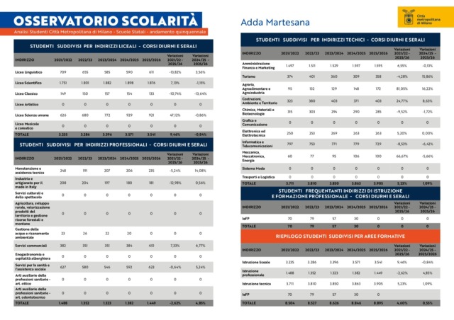 La Città Metropolitana di Milano continuerà a monitorare l’evoluzione dei dati e a supportare gli istituti nella programmazione dell’offerta formativa, con particolare attenzione all’edilizia scolastica e al potenziamento degli spazi didattici.