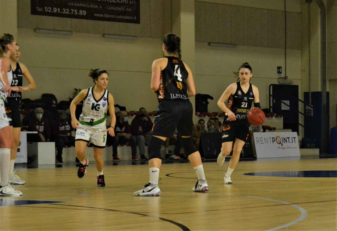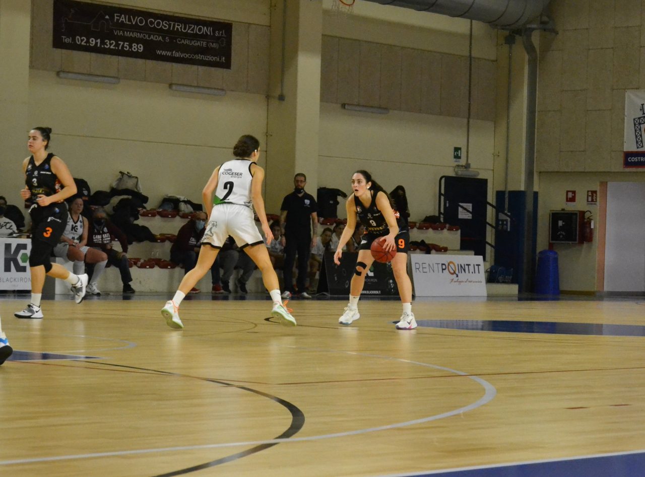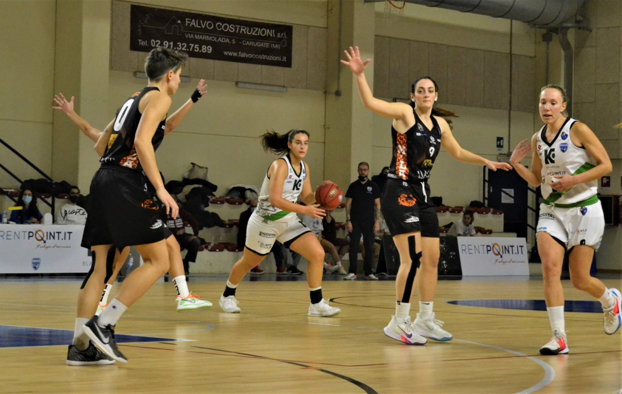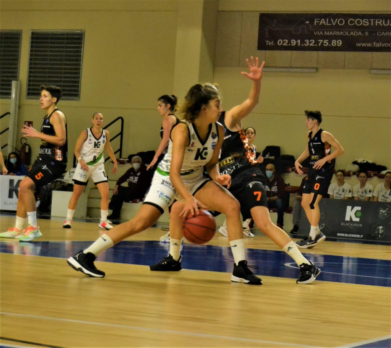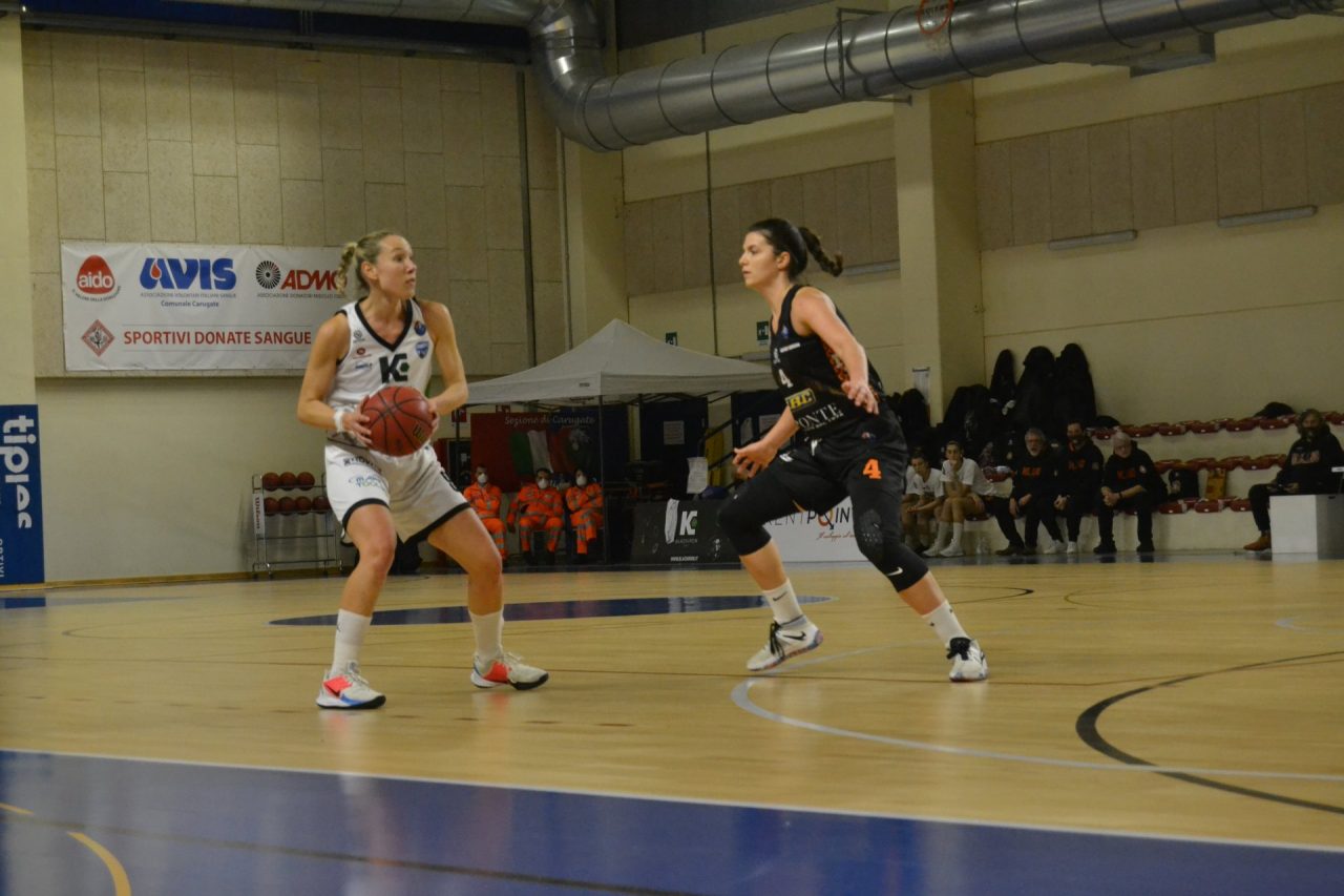 Che l’inizio di una riscossa potesse passare dalla difesa è stata l’intuizione che avrebbe potuto cambiare la partita. Dopo un avvio di terzo quarto ancora segnato da distrazioni al rimbalzo difensivo, coach Catalfamo è passato alla difesa a zona 2-3, con Colognesi fissa a centro area a coprire su Guarneri o Meroni. La soluzione scelta da Carugate ha inizialmente pagato, perché la penetrazione al ferro, punto di forza di Sanga, è stato inibito costringendo le milanesi a muovere palla sul perimetro e ad andare più spesso al tiro dalla lunga distanza, nel quale non hanno trovato buona fortuna. Una miglior difesa ha fruttato un miglior rendimento offensivo, costringendo Pinotti al timeout dopo un break di 5-0 di Carugate grazie alla tripla di Discacciati (36-50 al 25′). Milano si è subito riorganizzata e con transizioni rapide è riuscita ad aprire brecce nella zona di Carugate, chiudendo il terzo quarto con un vantaggio di nuovo rassicurante (46-59 al 30′). Nell’ultimo quarto, Carugate ha mantenuto la propria tattica difensiva, ma con più stanchezza e meno lucidità. Per Sanga non è stato difficile gestire il ritmo e il punteggio fino alla sirena finale, con Beretta e Toffali che hanno dilatato il vantaggio fino al +20 finale che ha riportato Sanga alla vittoria dopo un dicembre nero.