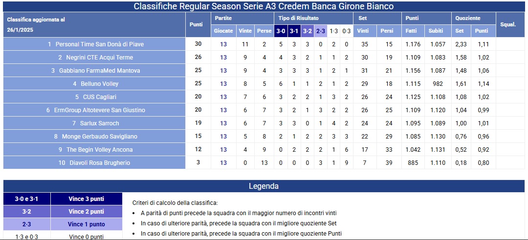 13° giornata Campionato Serie A3 Credem Banca Girone Bianco