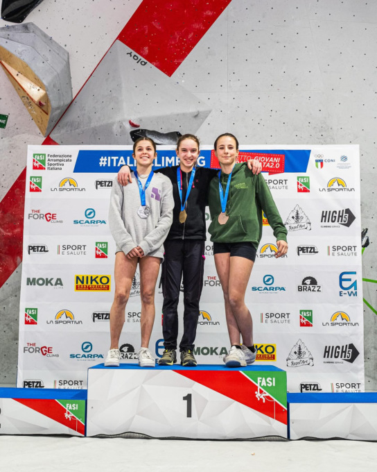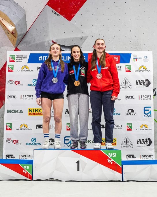Nella giornata di sabato 1 marzo si sono dimostrati i migliori risolutori di problemi nella categoria Under 15 Carlo De Cristofaro (Star Wall Climbing), medaglia d’oro, seguito da Forrest Christopher Marangoni (Pro Recco), medaglia d’argento, e da Riccardo Bergamaschi Cremonesi (Big Walls), medaglia di bronzo. Mentre nelle fila femminili ha conquistato l’oro Chiara Franceschi (Arco Climbing), si è aggiudicata l’argento Maddalena Faragona (Sisport SSD), mentre si è accaparrata il bronzo Eva Luna Grella (Hangar Frascati Climbing),